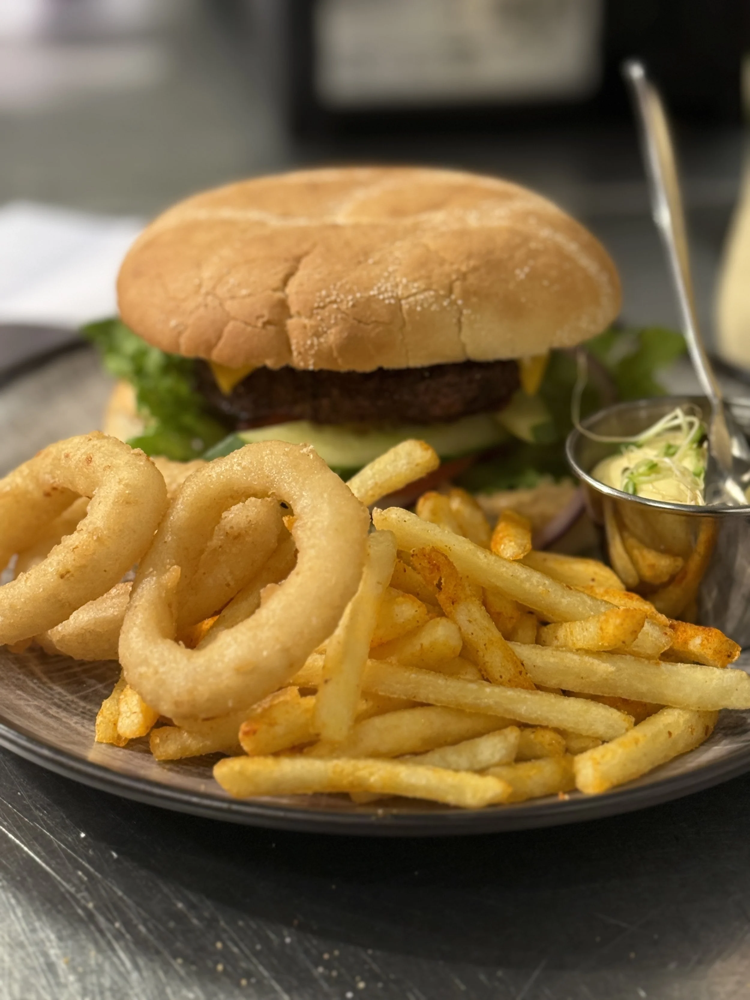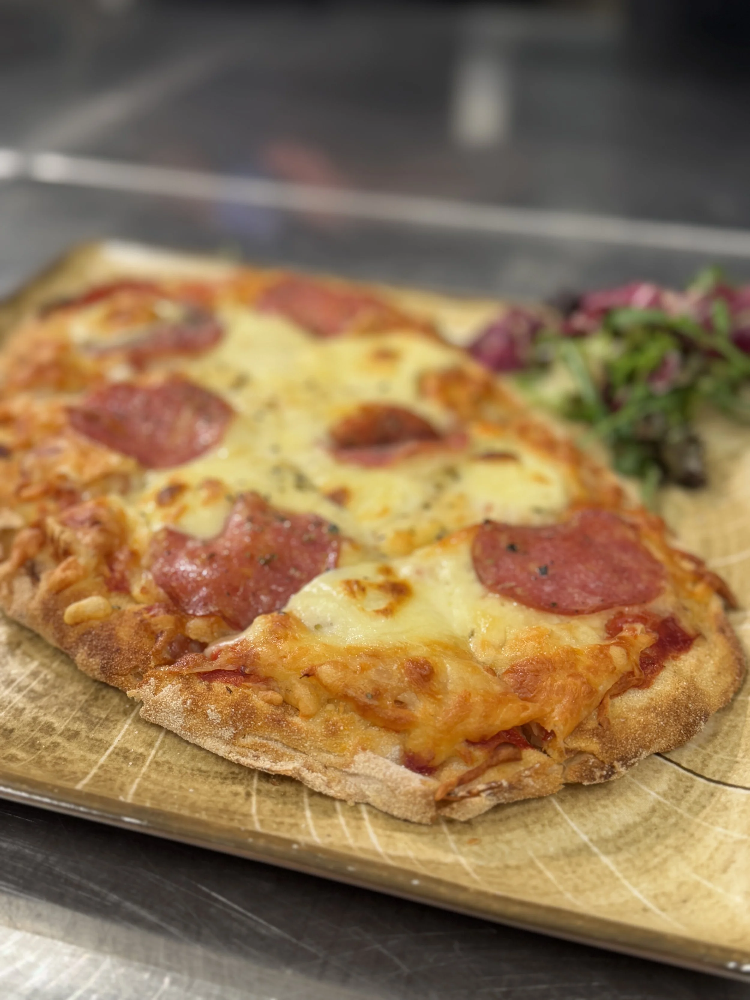 Buffeten inneholder et utvalg av pinsaer med ulikt fyll, burgere med tilbehør, salater, sauser, løkringer, chilli cheese, fries mm. Gode glutenfrie og vegetariske alternativer.