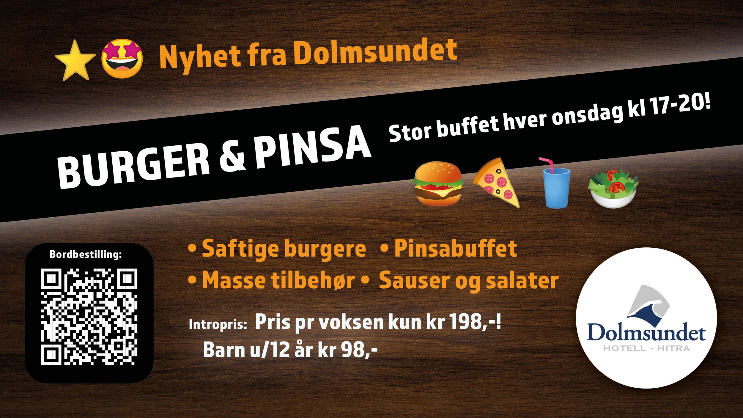 Nyhet fra 2026: Stor Burger- og pinsabuffet - hver onsdag!